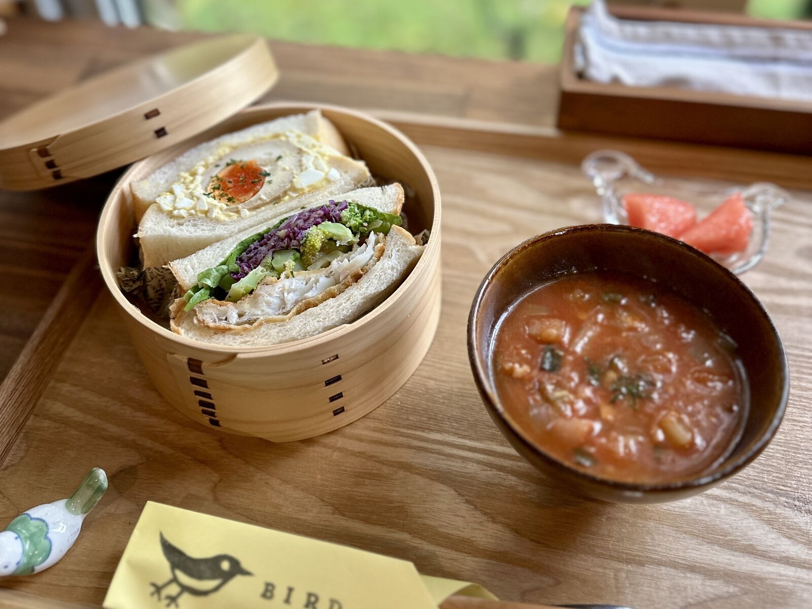 地元のリサイクル会社さんが運営し、旧社屋をリノベーションしたという店舗。木の温もりが感じられるおしゃれな空間で、ニセコエリアの地元産物を活かしたメニューを楽しむことができます。道産小麦100%のパンやマヨネーズなども全て手作りだそう!おすすめメニューは「生ハムと二世古頂チーズ」のバケットサンド。サクサクのバケットとたっぷり具材の上には、ニセコチーズ工房さんの2種類のチーズがかかっていて、口いっぱいにおいしいが広がります。季節ごとに変わるパフェや手作りスイーツも好評で、ランチやカフェタイムにおすすめです。ドッグランもあります。