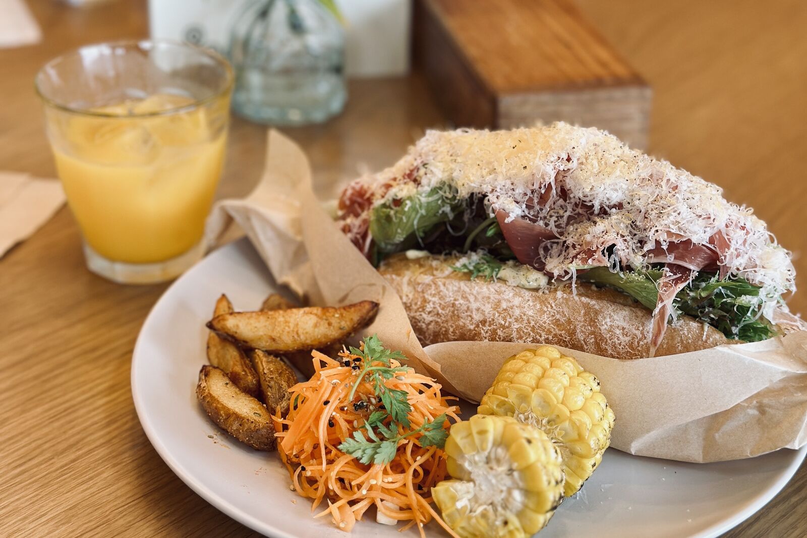 2026年にNEWオープンしたカフェ。羊蹄山の周りで採れた野菜や穀物、豆類などを使った和菓子、洋菓子、パンの製造をしており、イートインはもちろん、テイクアウトもでき、お土産にもうれしいクッキー缶や、パウンドケーキの詰め合わせなども揃っています。 ベーグルサンドは、プレーン、チーズ、全粒粉、エブリシングの4種類から選ぶことができ、ドリンク付きのセットがおすすめ。場所は、スーパーマーケット「ラッキー」さんのすぐ横なので、お買い物がてらにちょっと休憩できる便利なスポットです。