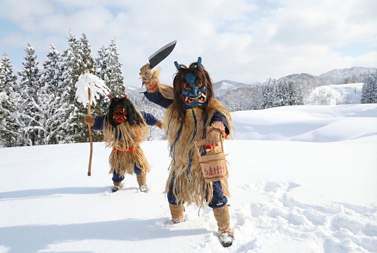 なまはげは、秋田県男鹿地方に古くから伝わる伝統行事です。「悪い子はいねが〜」と家々を巡り、無病息災や健やかな成長を願う存在として親しまれてきました。その迫力ある姿と力強い所作は、日本文化を象徴する伝統芸能のひとつです。ユネスコ無形文化遺産に登録されており、ニセコHANAZONOリゾートでその文化を体験できるまたとない機会です。